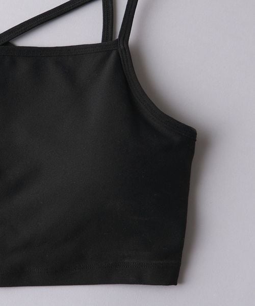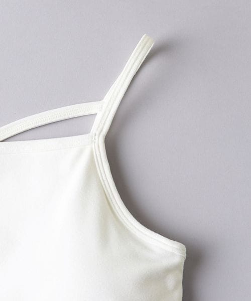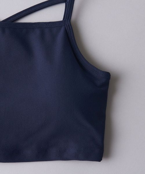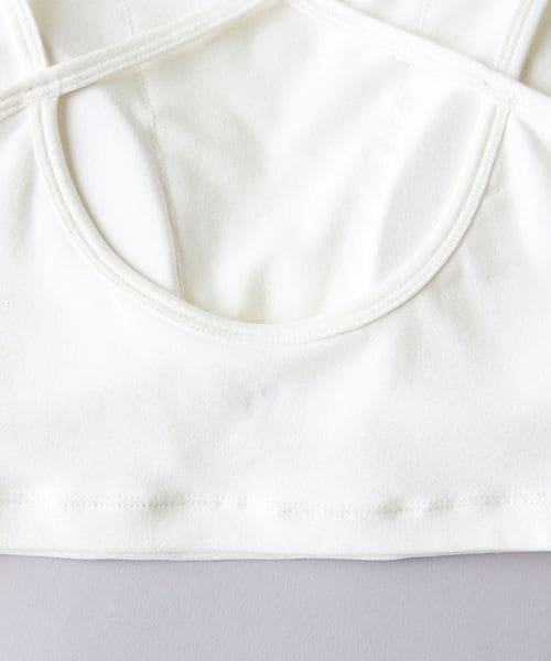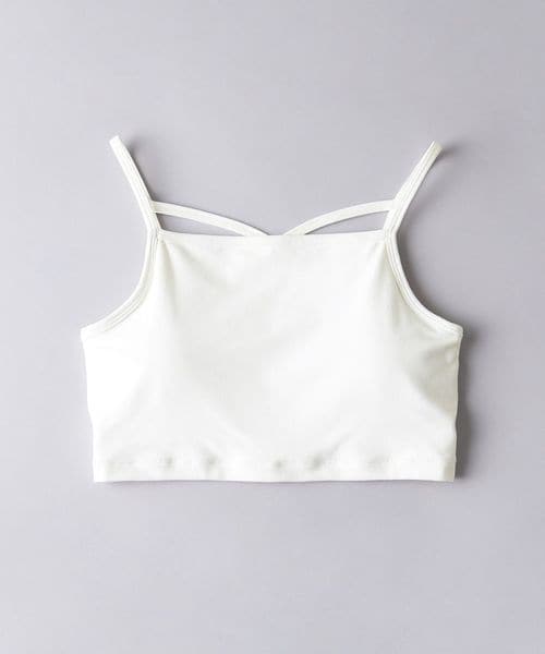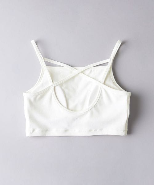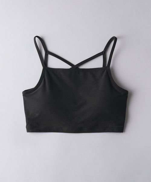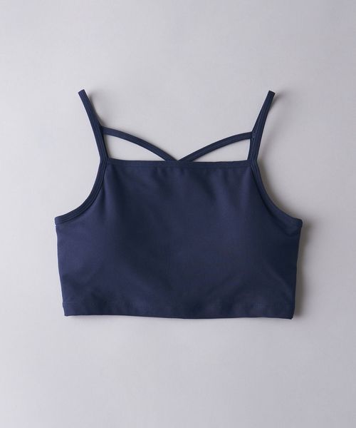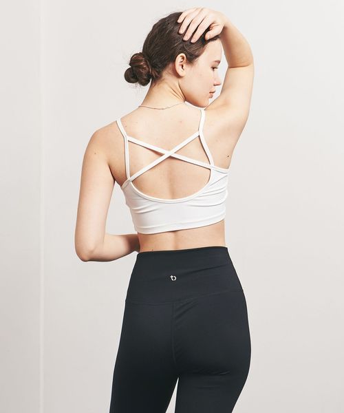 クロスしたバックストラップが背中を美しく見せ、アクティブシーンでも目を引くデザイン。