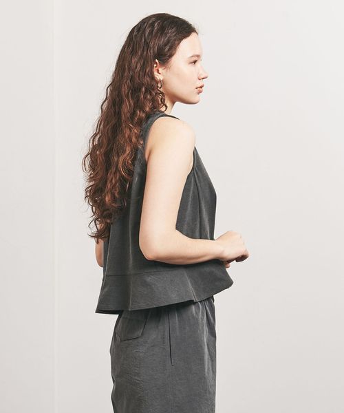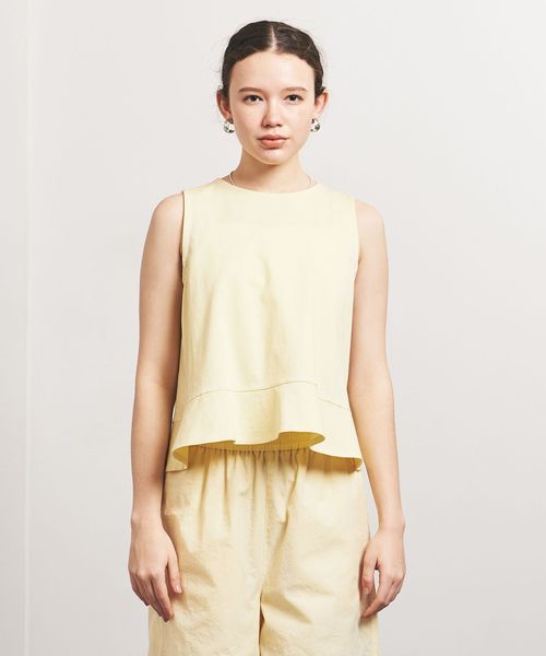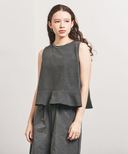 やや肉感のある生地を活かしたAラインのペプラムシルエットは、ブラトップの上からの着用をイメージしたデザインです。