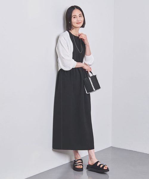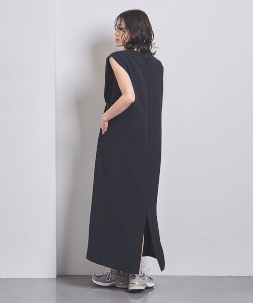 ストンと縦に落ち感のあるIラインのワンピース。