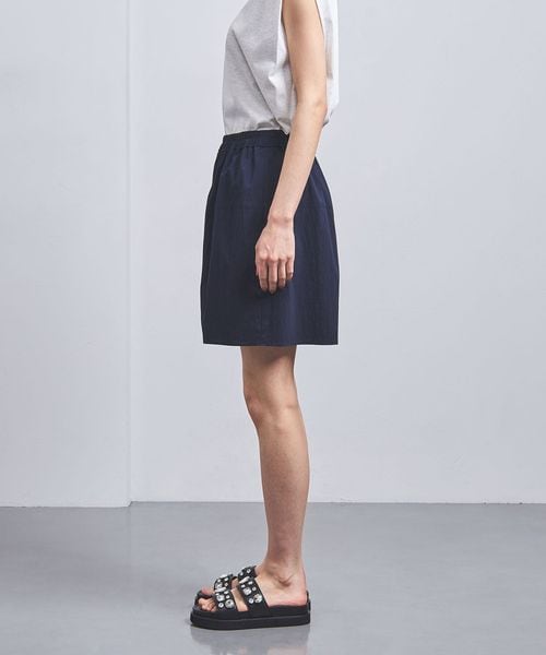 同素材のシャツとのセットアップ着用はもちろん、初夏にはざっくりとしたニットにローファー合わせ、盛夏にはTシャツを合わせた軽やかなコーディネートなども素敵です。