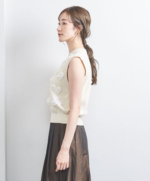 3D フラワーモチーフ ノースリーブ ニットベスト