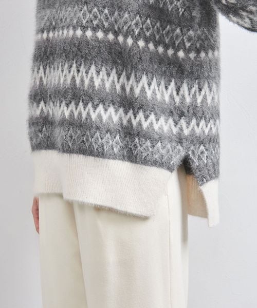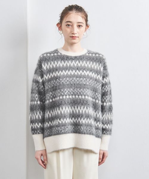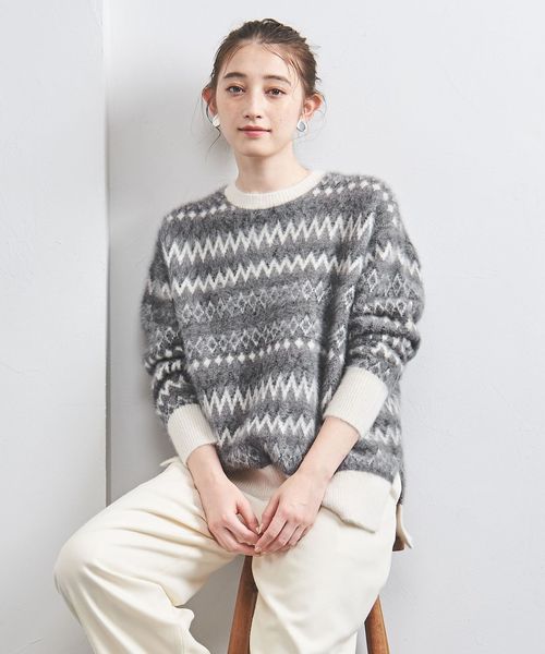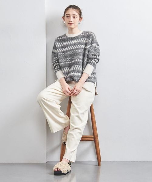 ニット以外をオフホワイトでまとめたスタイリングも、柄が際立っておすすめです。