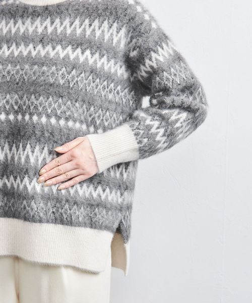 ラメ糸の輝きがリッチ感を添えるジャカードニット。