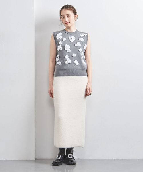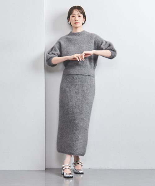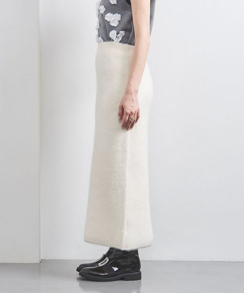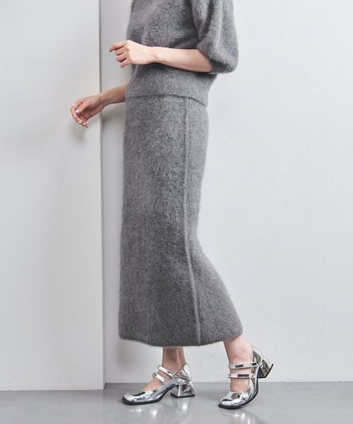ふわりとしたファーリー素材が好評のニットタイトスカート。