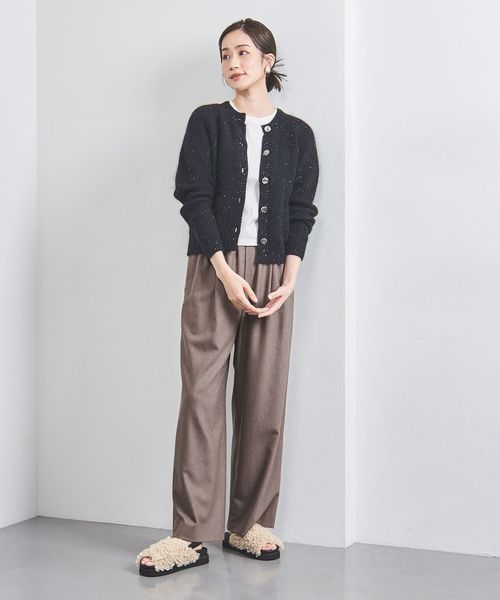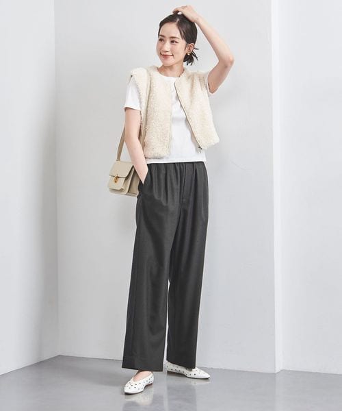 タテ糸に紡毛糸、ヨコ糸に梳毛糸を使用した、ふくらみ感と発色の良さが魅力のユナイテッドアローズ別注素材を使用。