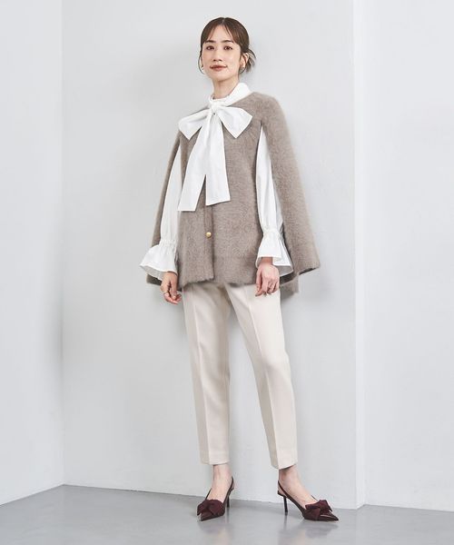 シンプルなインナーを合わせたミニマルなコーディネートはもちろん、ボウタイブラウスを合わせた華やかな着こなしもおすすめ。