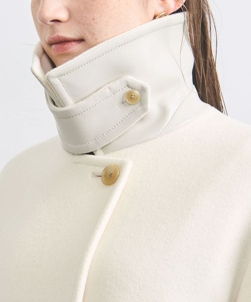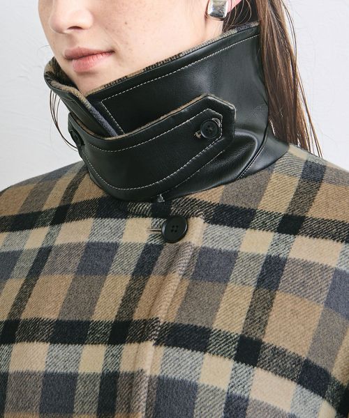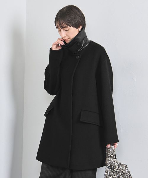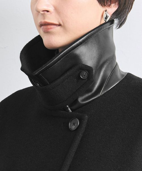 襟裏とフラップポケット裏をレザーライクにし、モード感をプラス。