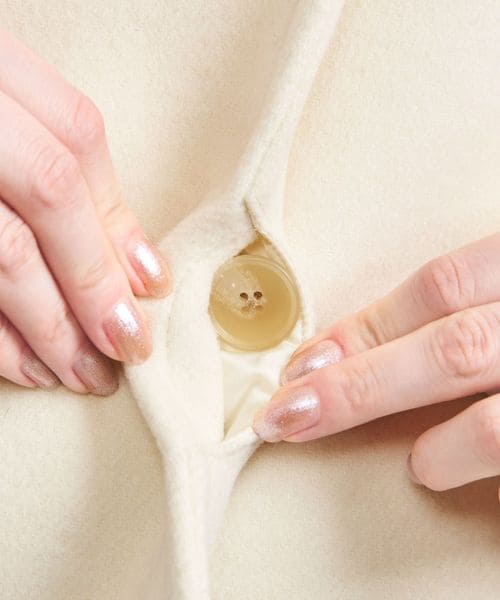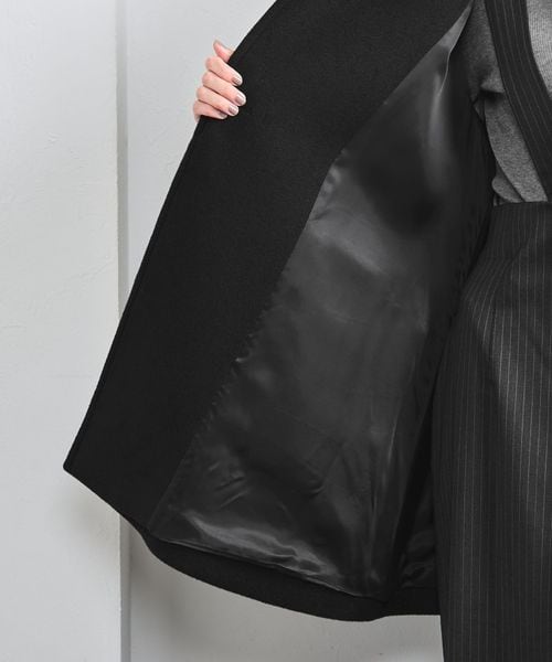 ドロップショルダーで抜け感のある表情にし、比翼仕立てのシンプルなデザインです。