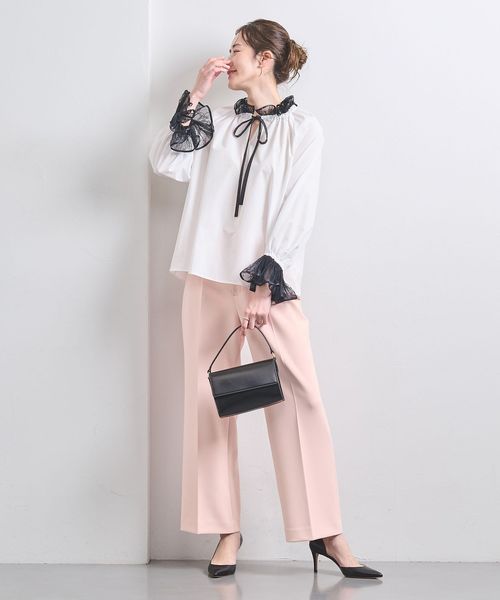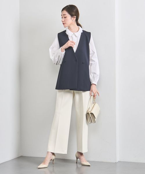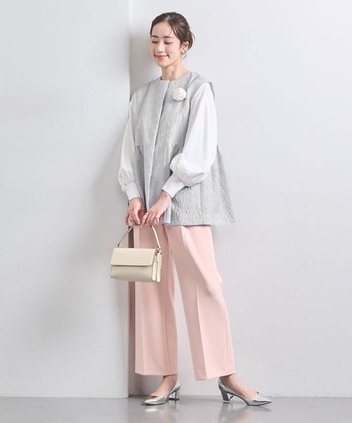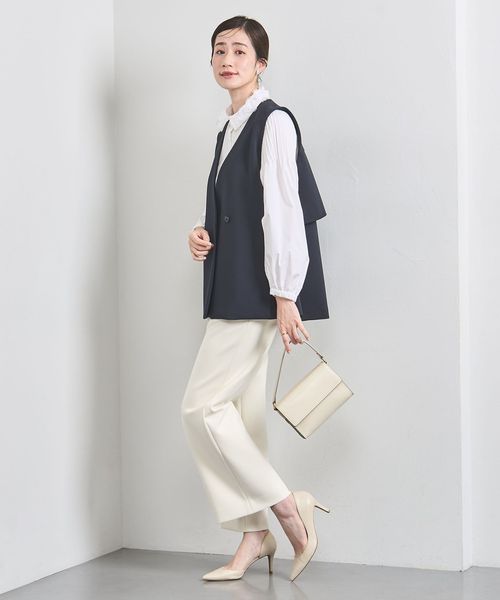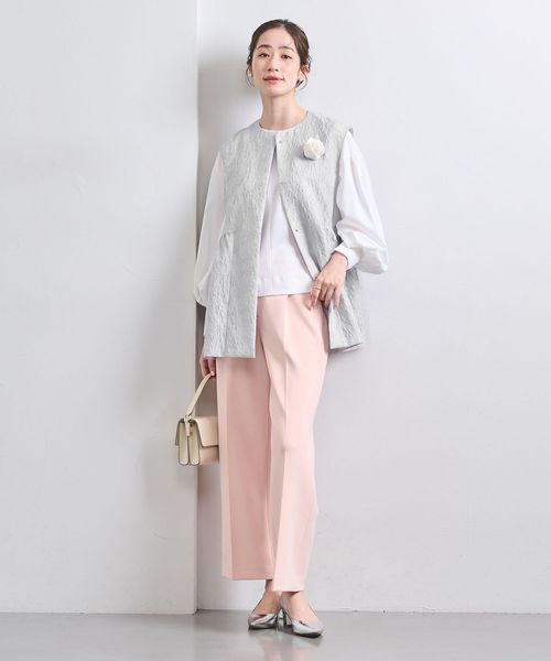 同素材のブラウスやベストとのセットアップ着用はもちろん、ニットやジャケットなどさまざまなトップスと好相性。