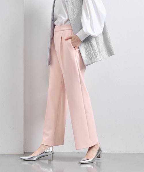 1タックで膝巾と裾巾が同寸法のワイドストレートシルエット。
