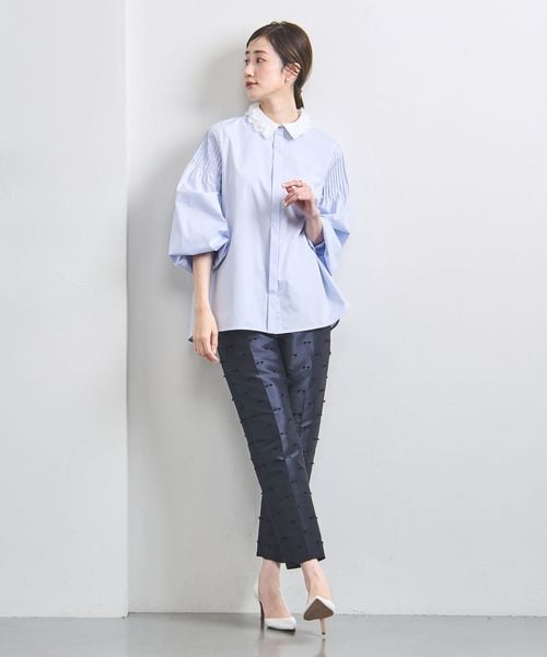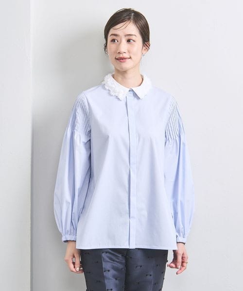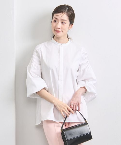 袖山の繊細なピンタックと袖のシルエット変化が魅力の袖コンシャスなブラウスです。