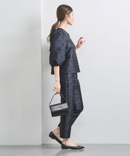 同素材のパンツとのセットアップ着用はもちろん、スリムなテーパードパンツやストレートパンツとのコーディネートも素敵です。