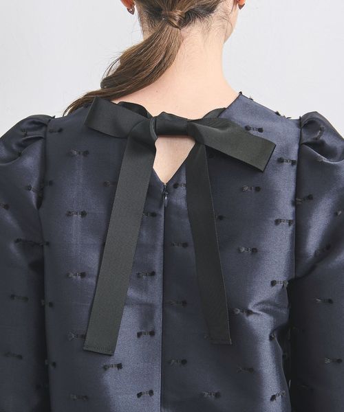 バックネックには取り外し可能な大き目のグログランリボンがあしらわれています。