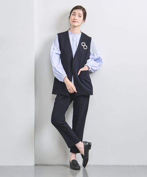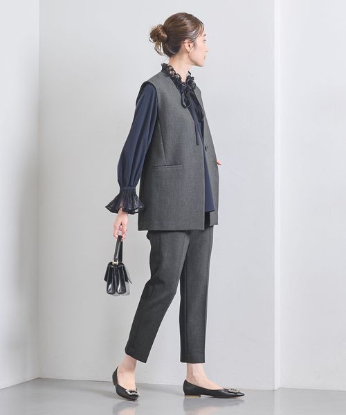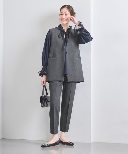 ボウタイブラウスや袖コンシャスなブラウスなど、デザイントップスとも好相性。