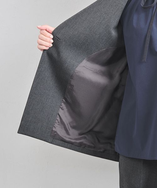 同素材のパンツやスカートとのセットアップ着用はもちろん、単品使いでも着回しが利く一着。