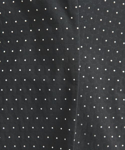 タテ糸に伸度のある糸を、ヨコ糸にコットンを使用し、光沢感の強いブライト糸でドットを表現。