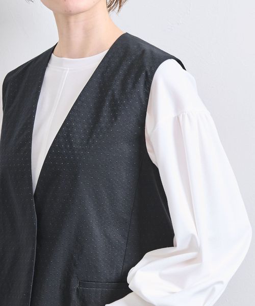 マニッシュな佇まいながら、女性らしい華やかさも楽しめるベスト
