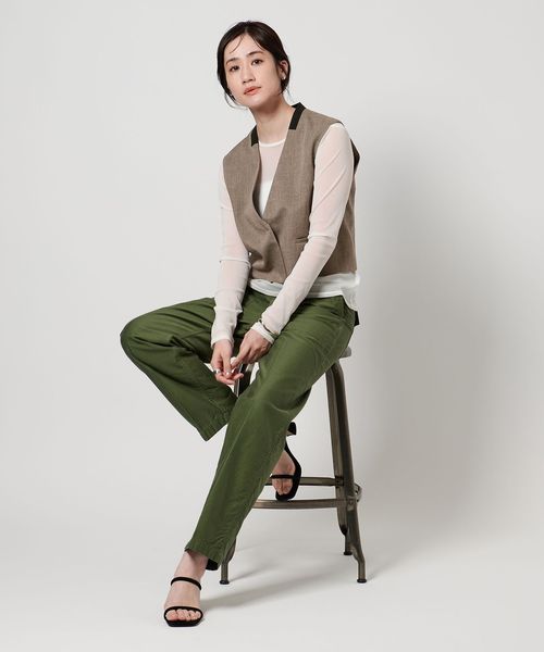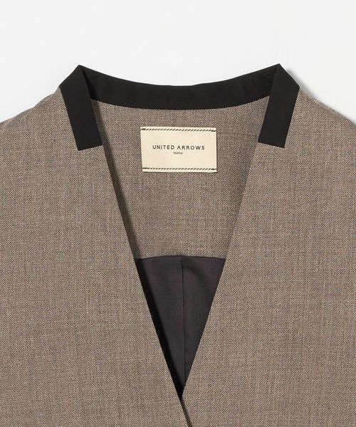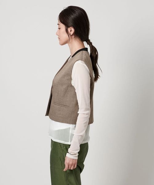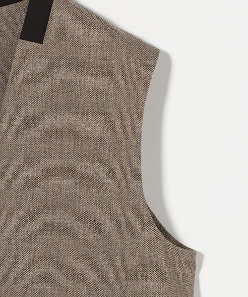 Vネックノーカラーですっきりとした印象のミニマルなベスト。