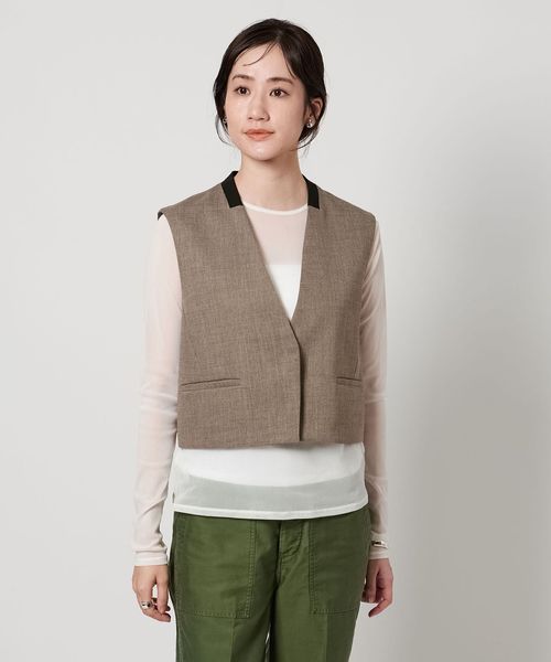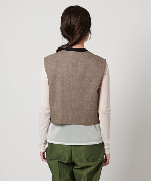 素材感を活かしたシンプルで辛口な印象のショート丈ベスト