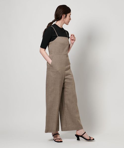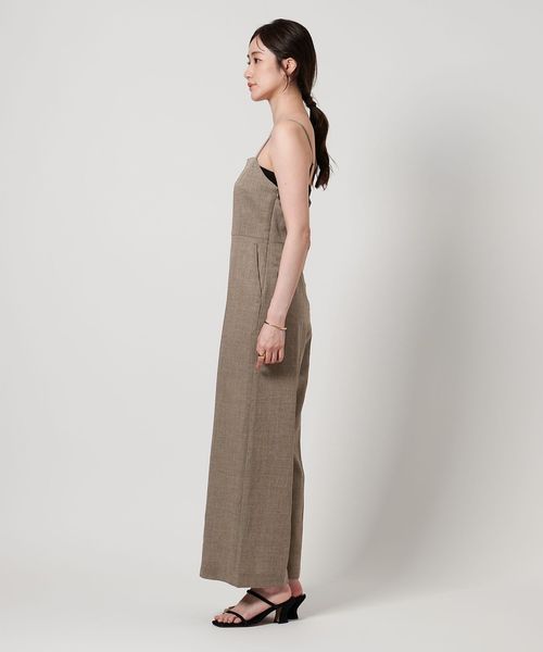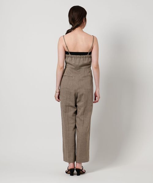 後ろ上端に平ゴムを入れ優しいフィット感を出したキャミソール型サロペット。