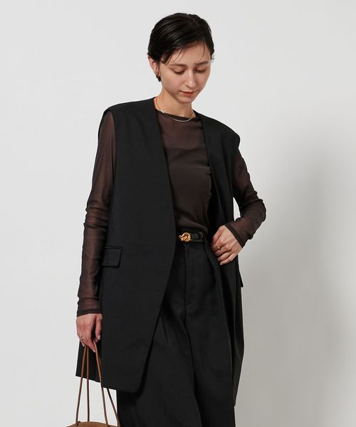 ノースリーブトップスやTシャツ、シャツなど幅広いレイヤードが可能。