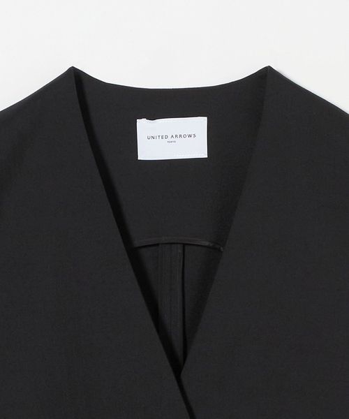 シャープなVネックはフロントを留めても開けても素敵なバランスです。