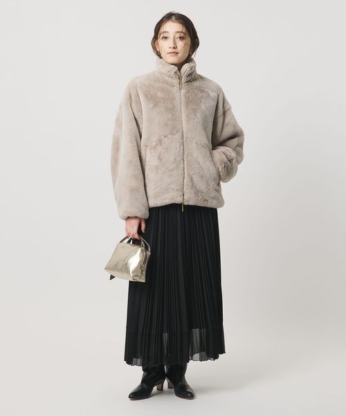 ツイードやプリーツ等の、秋冬らしい表情のある素材のボトムスが好相性。