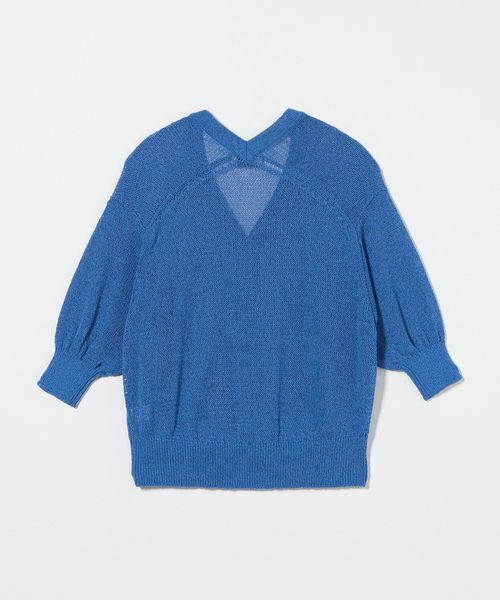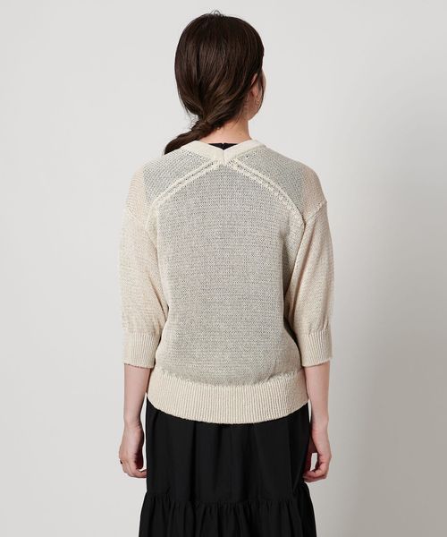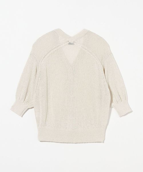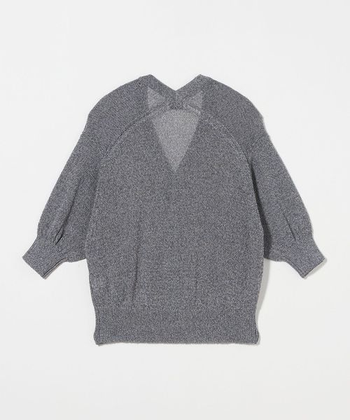 たっぷりとしたシルエットのハーフスリーブが特徴のVネックカーディガン。