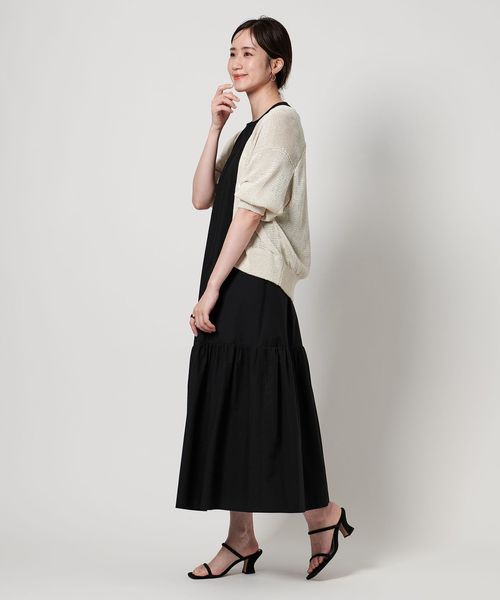 麻調の素材のアイテムとも相性が良く夏らしい印象を楽しめます。
