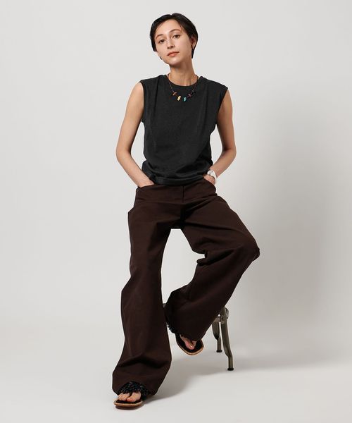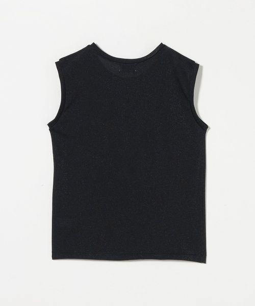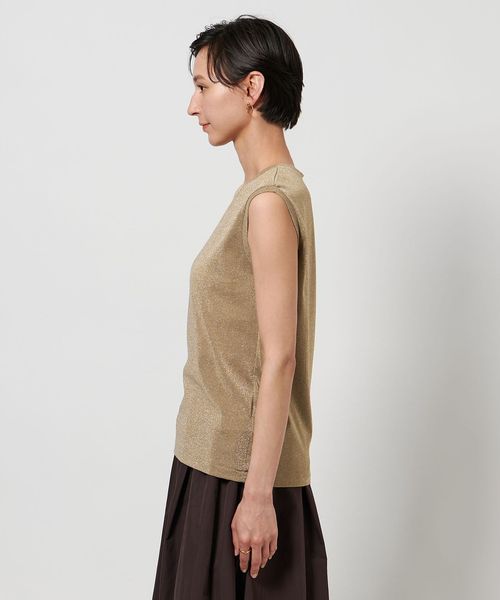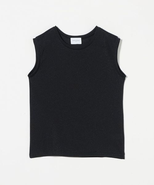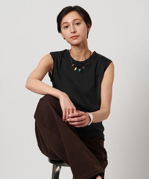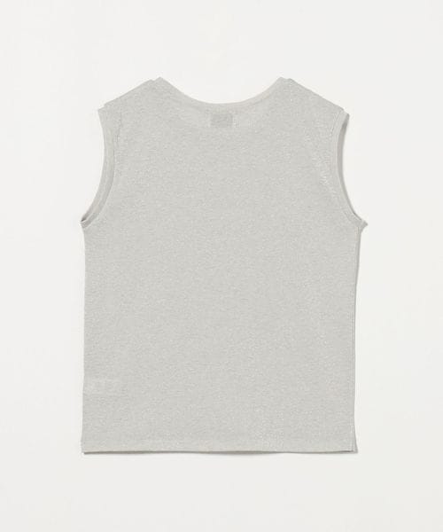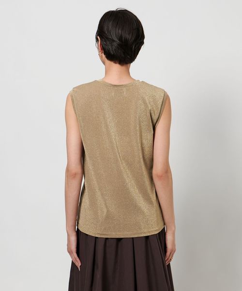 華やかな印象のラメ素材をシンプルなノースリーブカットソーに仕立てた、上品なカジュアル感が魅力。