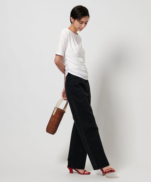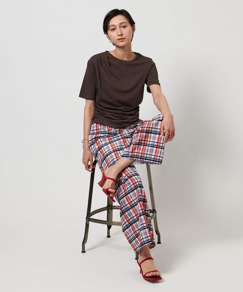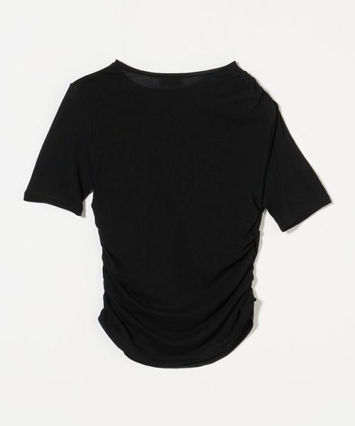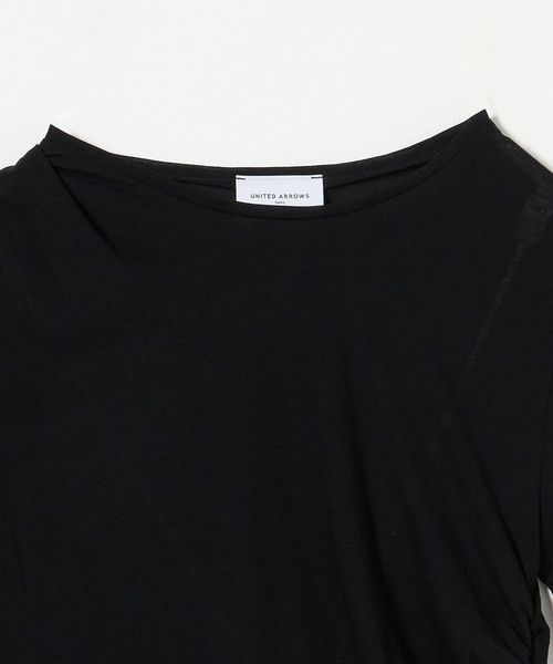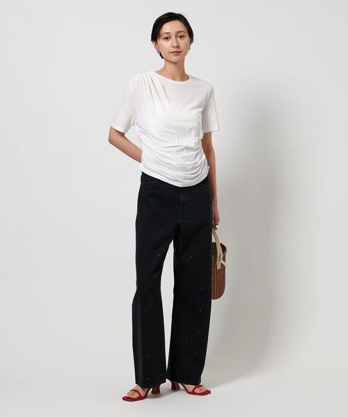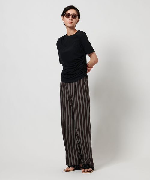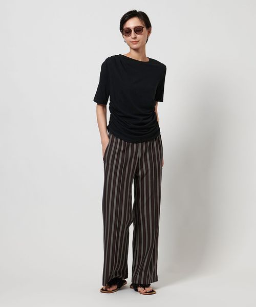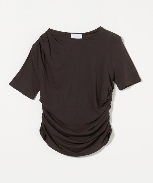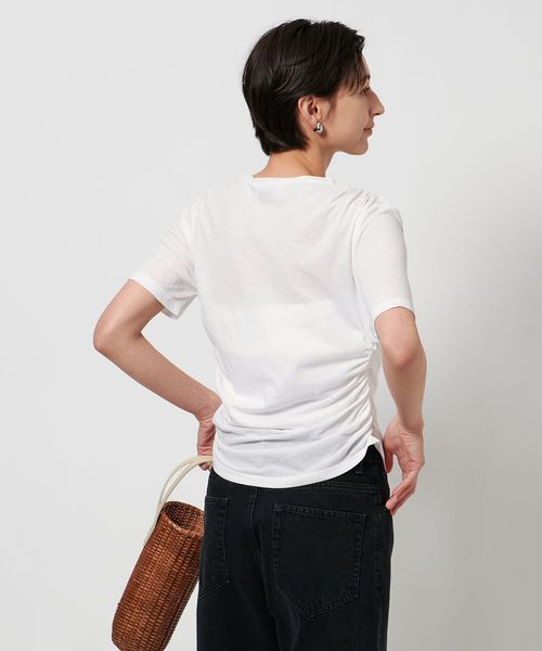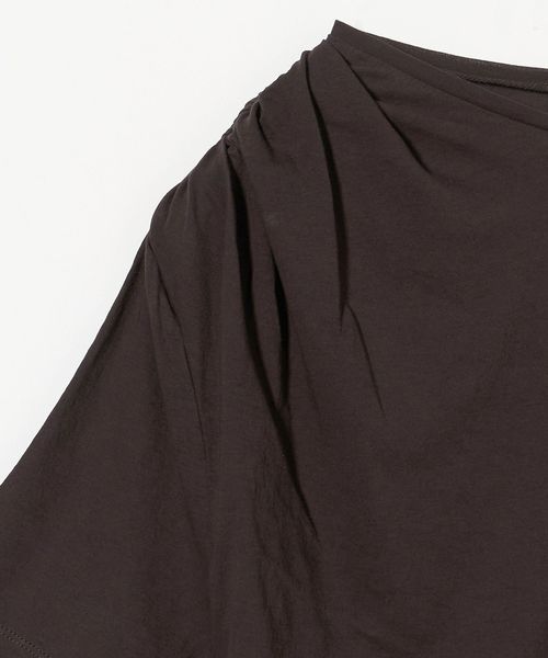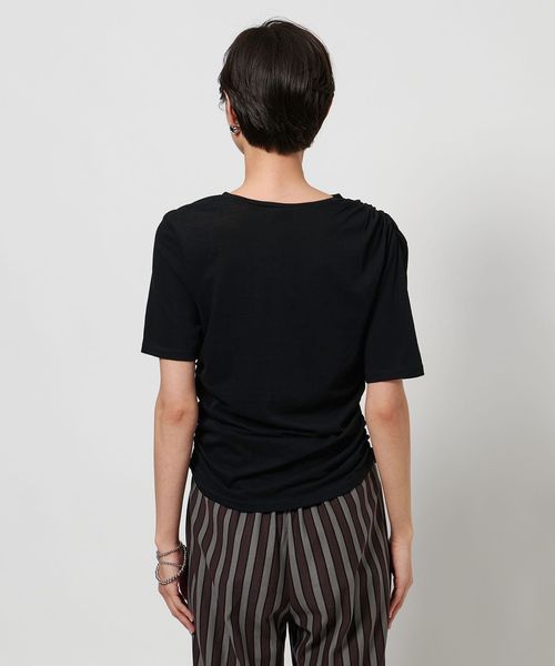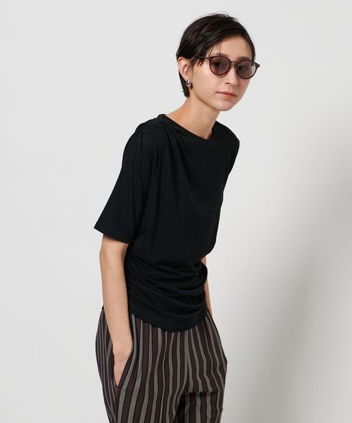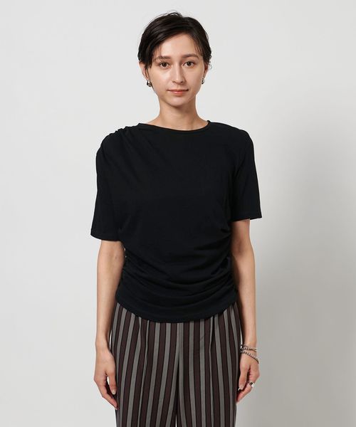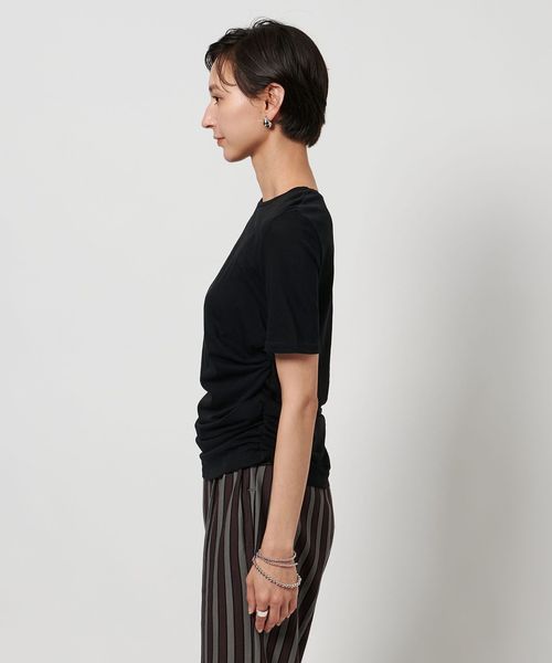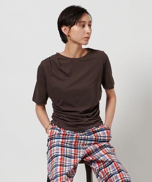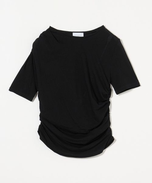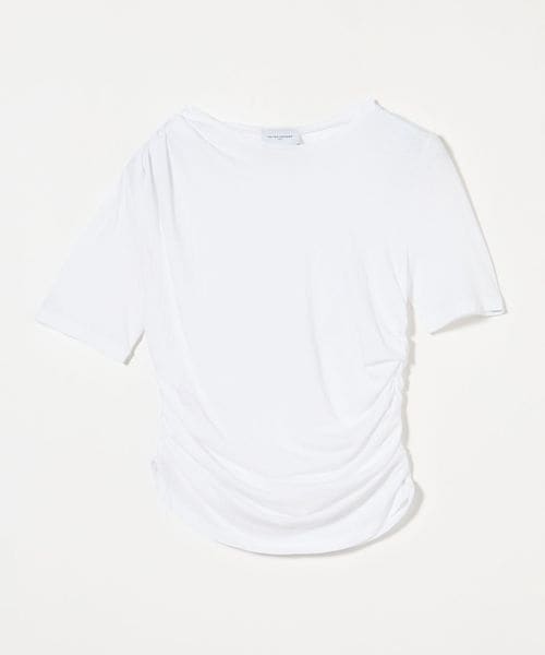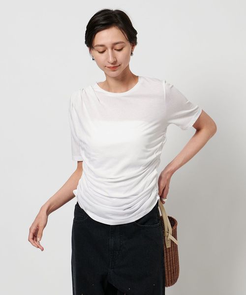 Tシャツとドレープデザインの組み合わせが新鮮な一着。