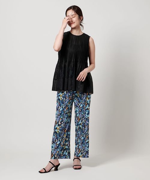 パンツの華やかさを活かしつつ、トップスはシンプルなニットやカットソー、ジャケットなどを合わせていただくと、大人の洗練された夏スタイルが完成します。
