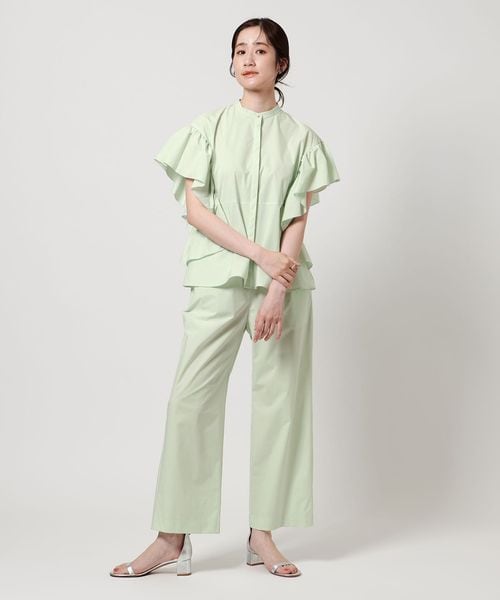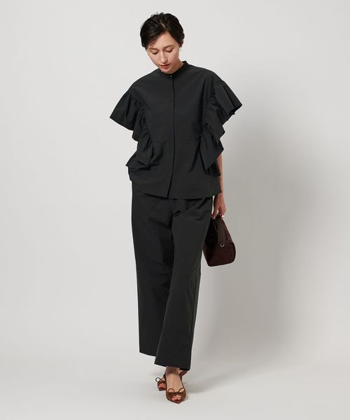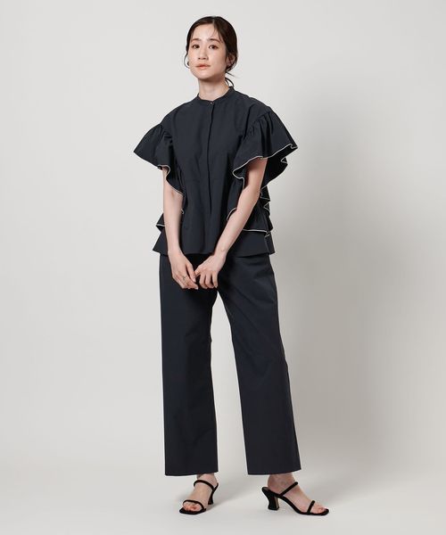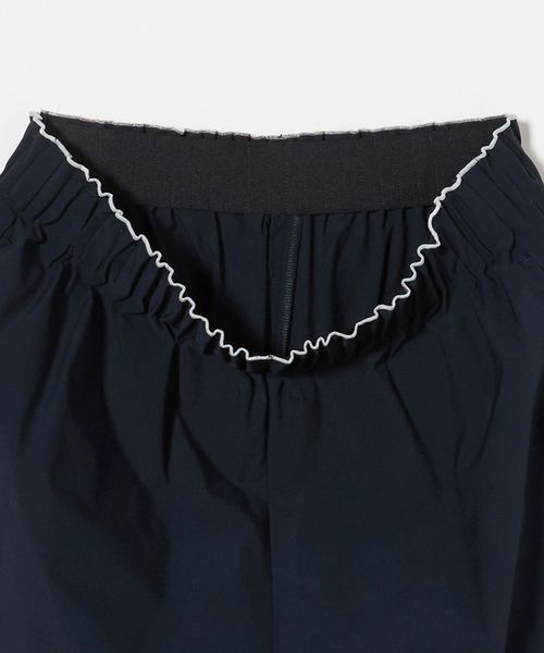 ウエストは平ゴムにタック+ステッチ仕様で立体感があり、上端に施されたメローディテールもデザインポイント。