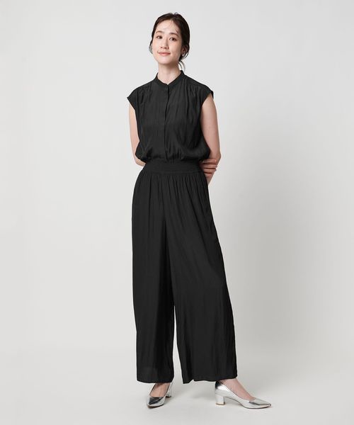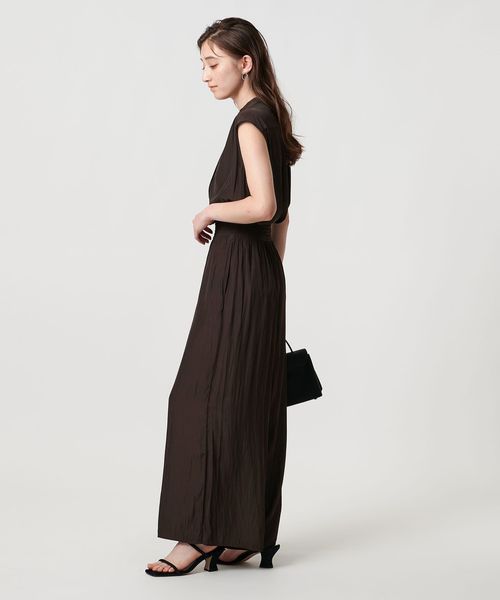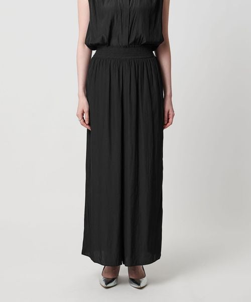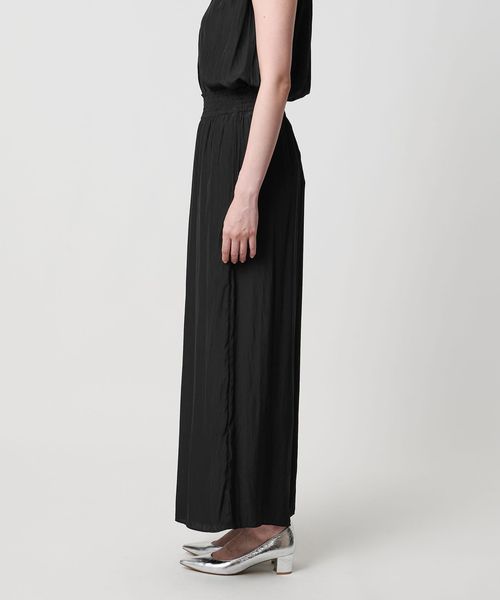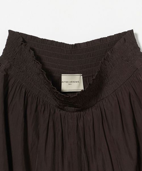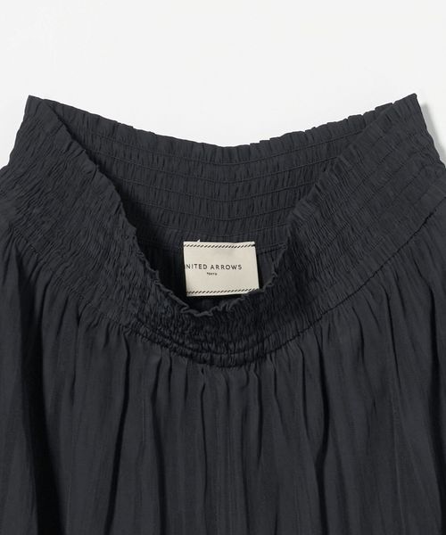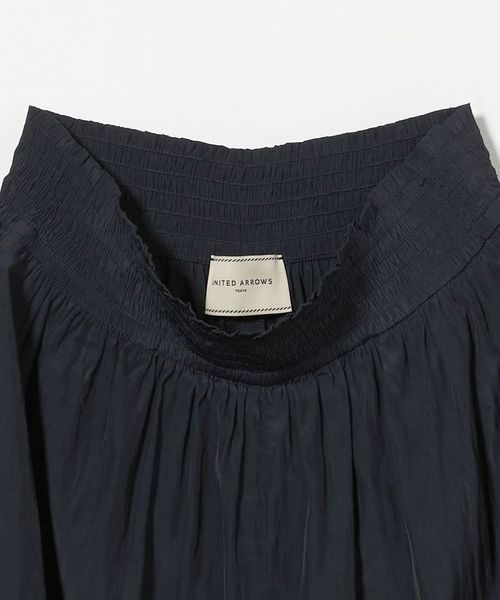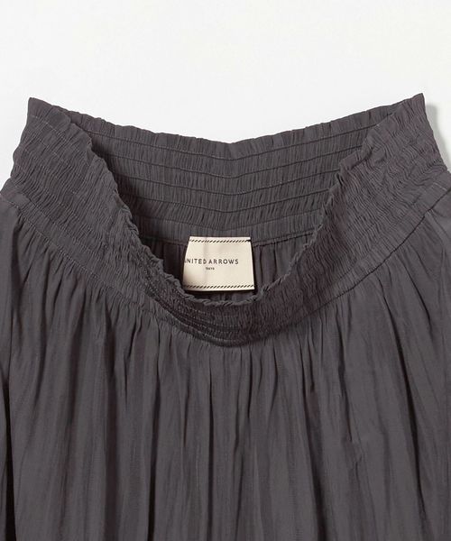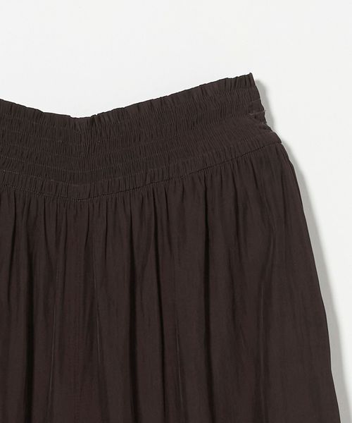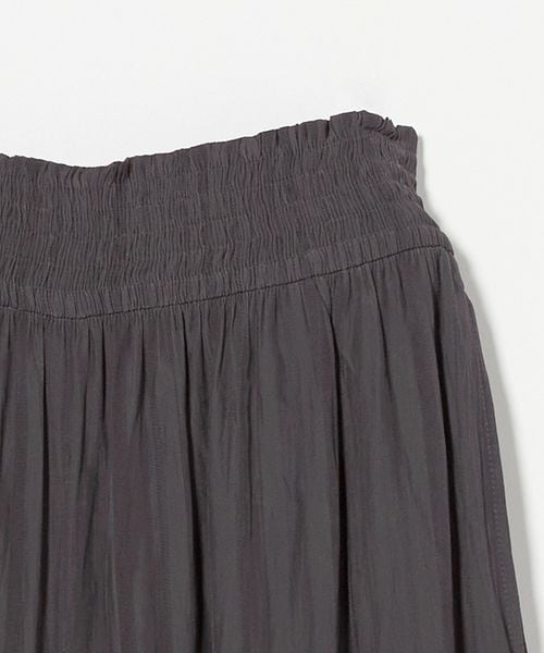 シャーリングゴムでウエストギャザーを多めに入れ、歩く度に揺れるシルエットが女性らしい印象です。