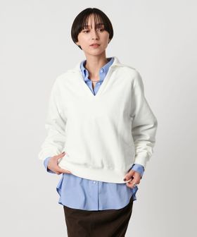 程よい抜け感と大きな襟が特徴のスキッパースウェット。