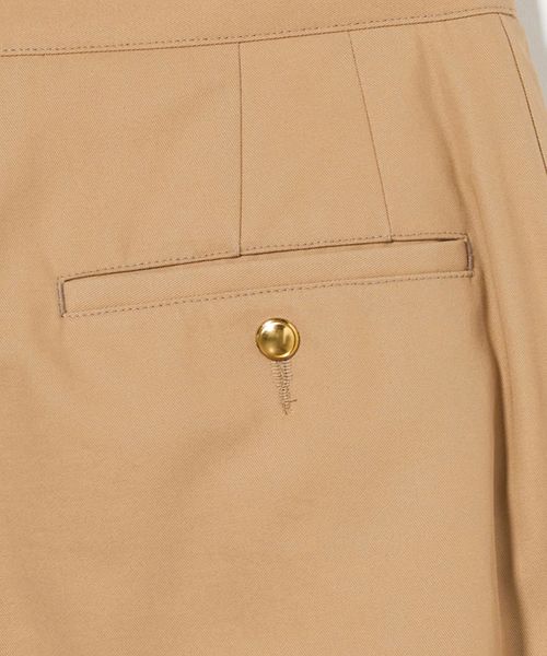 ゴールドカラーのボタンがアクセント。大人のきれいめチノパンツ