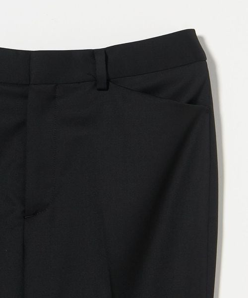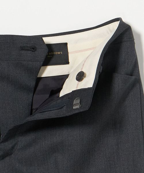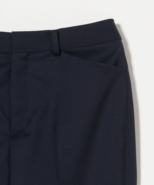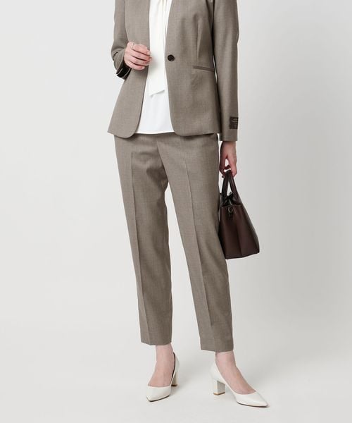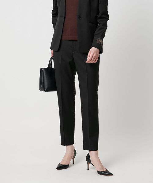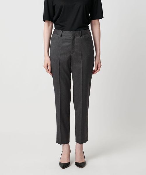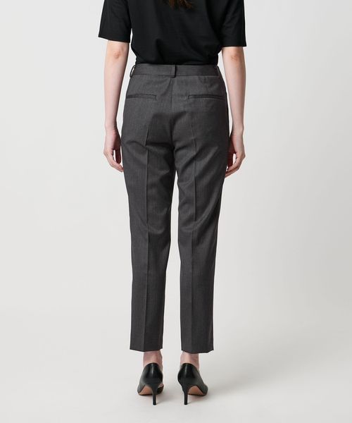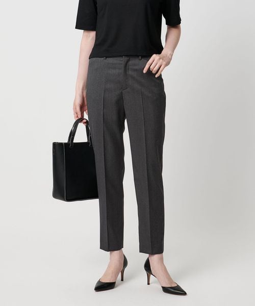 全体的にすっきりとした、ノータックの細身テーパードシルエットのパンツ。