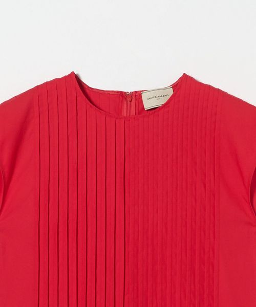 身頃全体のタックとステッチワークディテールをポイントに、裾へ広がるボリューム感のあるシルエットが女性らしい印象のフレンチスリーブワンピース。