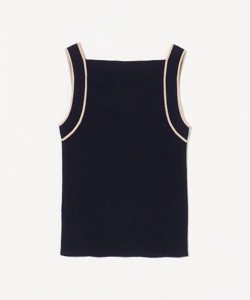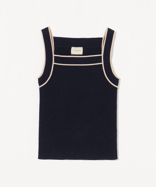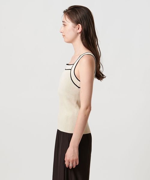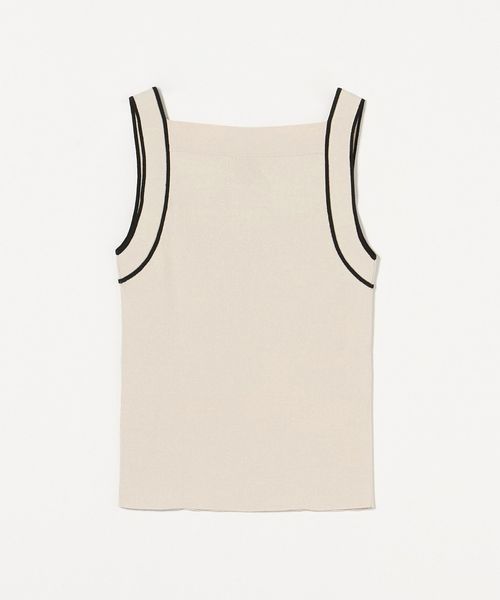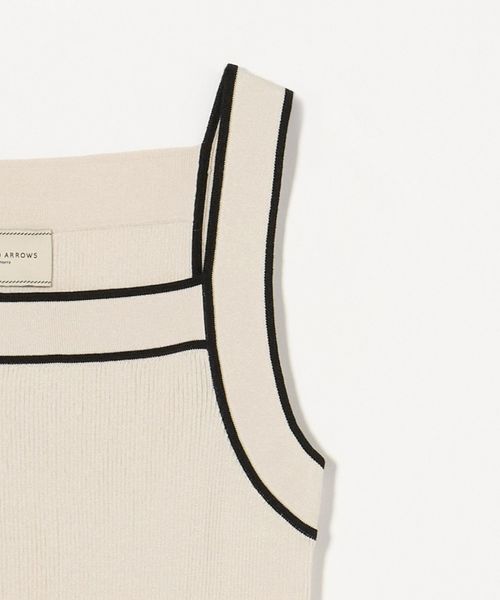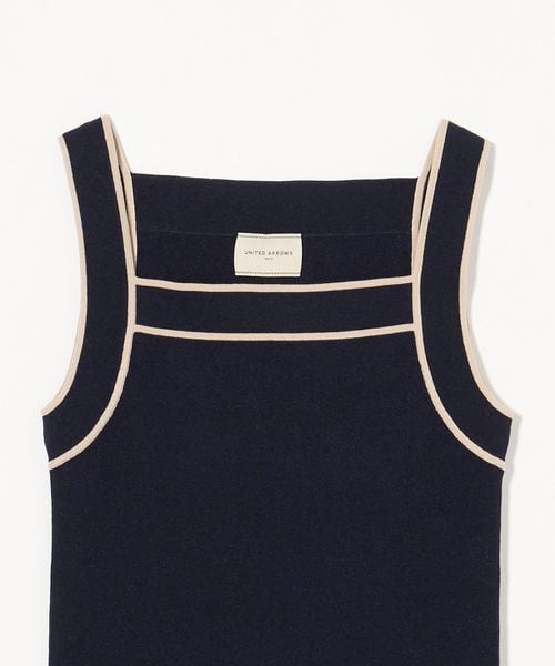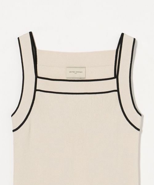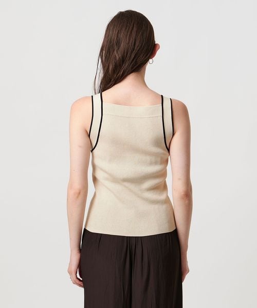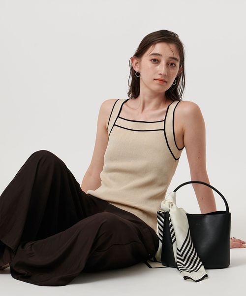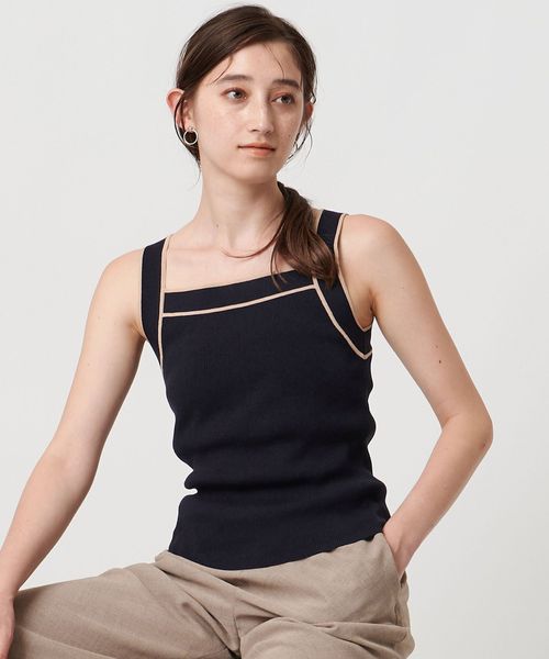 襟ぐりの配色ラインのデザインが目をひく、ニットキャミソール。