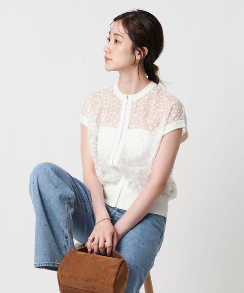 季節感を彩るシアー感のあるチュール素材に、オリジナル刺繍を施した繊細な雰囲気の一着。