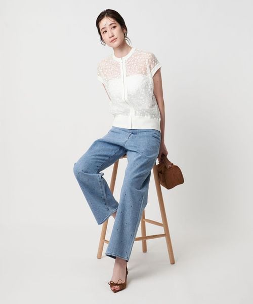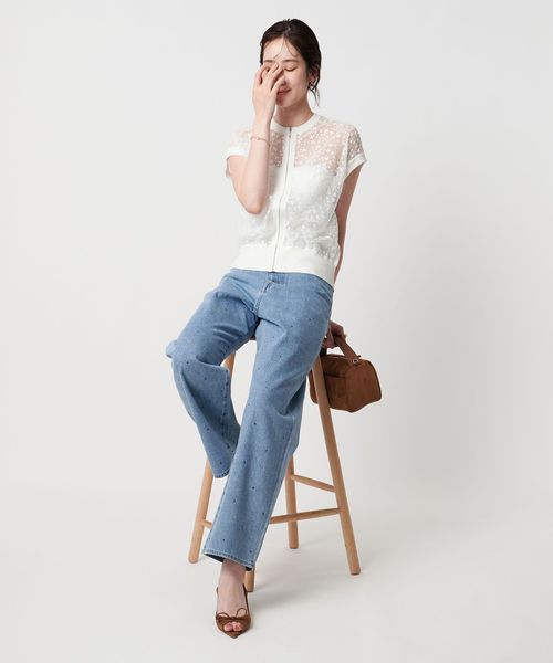 インナー次第で着こなし変化が楽しめるシアー刺繍ベストは、涼し気にキャミソールやノースリーブを合わせた着こなしから、シャツなどのレイヤードにもおすすめ。