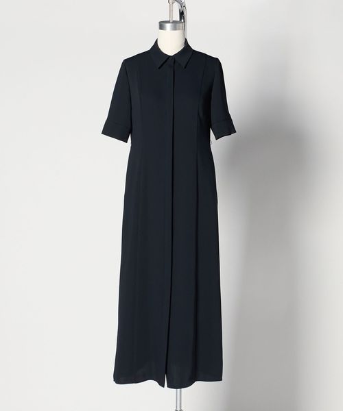 コンパクトな身頃や袖が、ミニマルでクラシカルな印象のマキシ丈ワンピース。