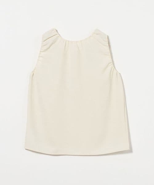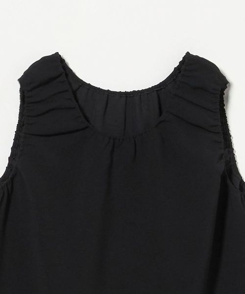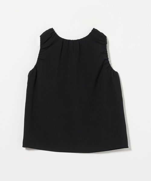 シンプルながら、シャーリングのニュアンスが効いたノースリーブブラウス。