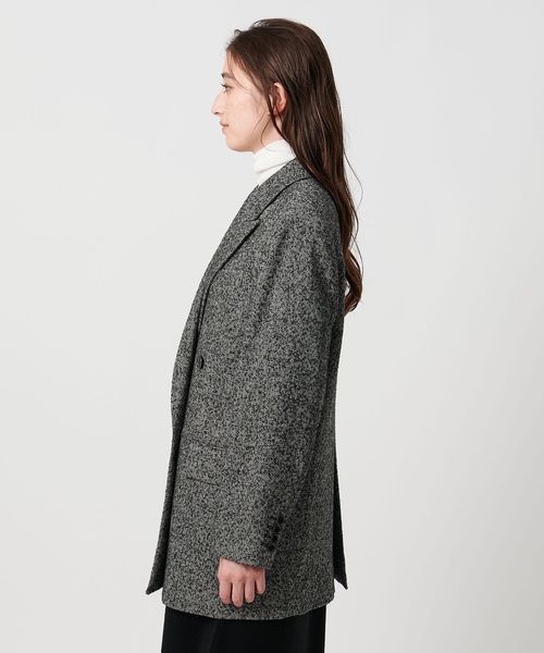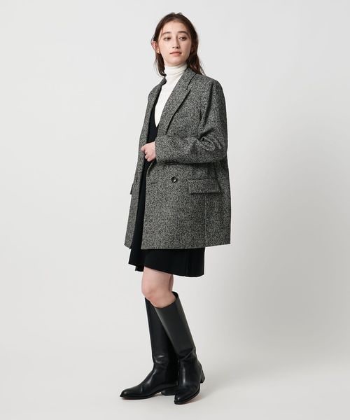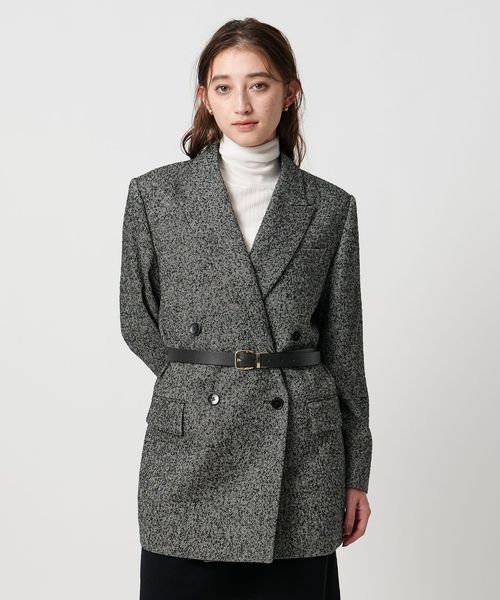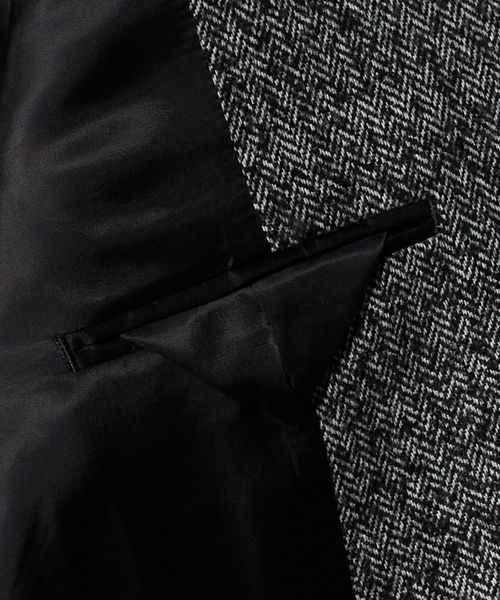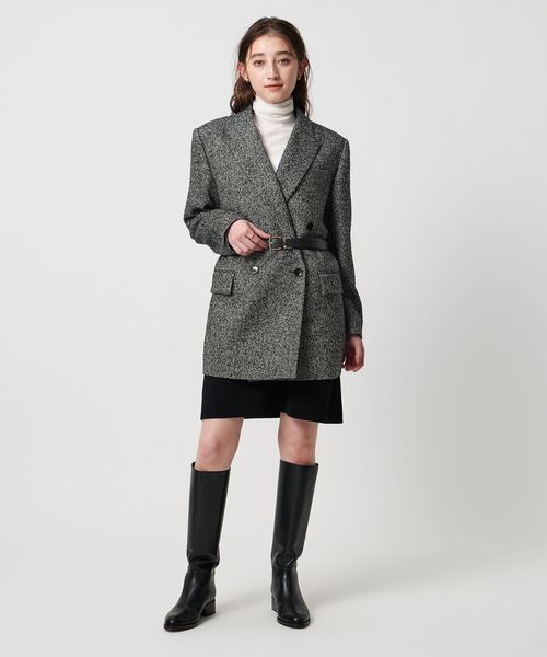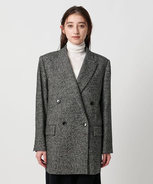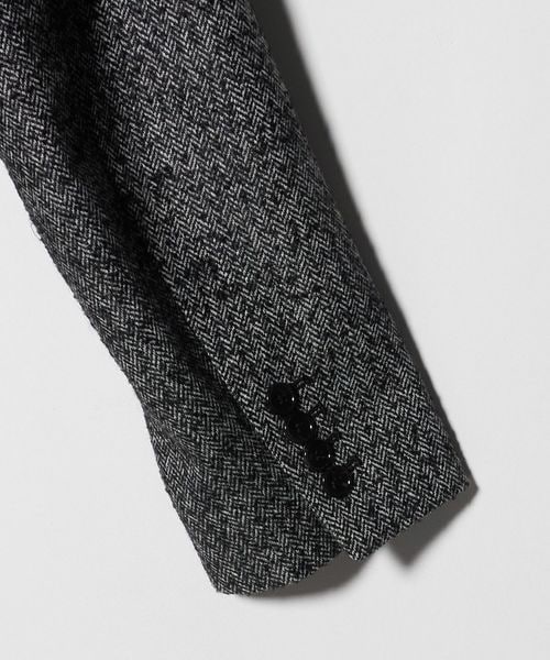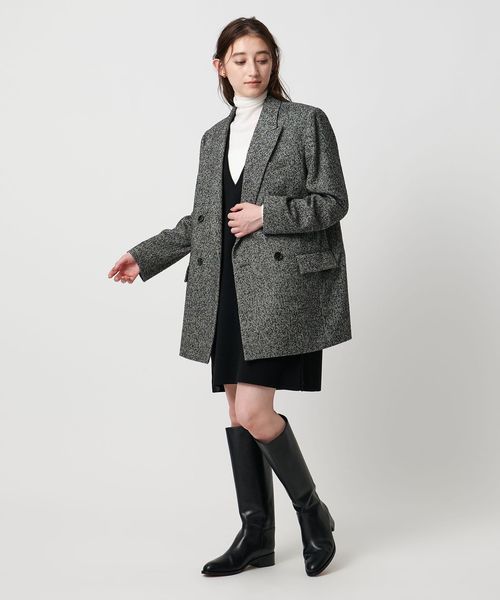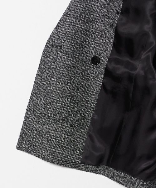 ヘリンボーンツイードを使用したダブルブレストテーラードジャケット。
