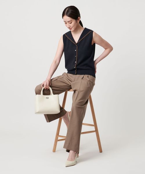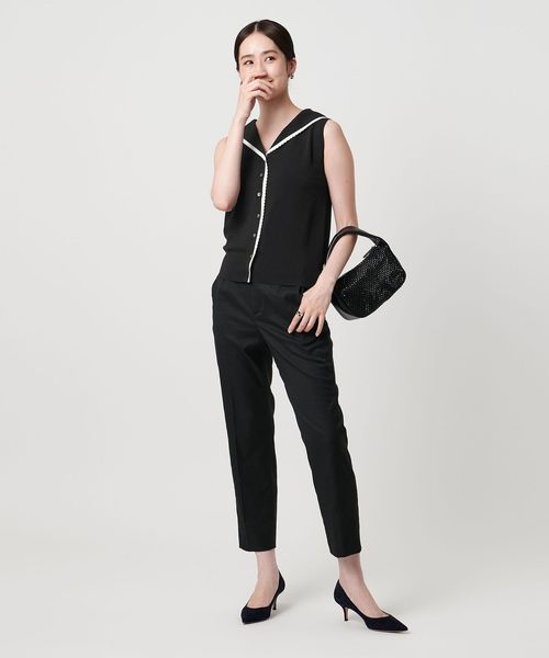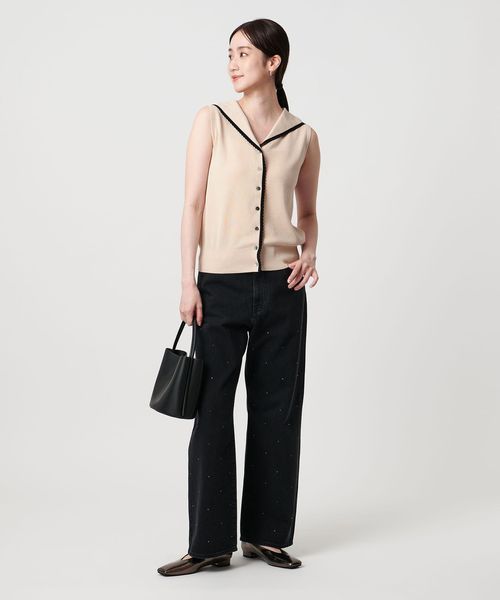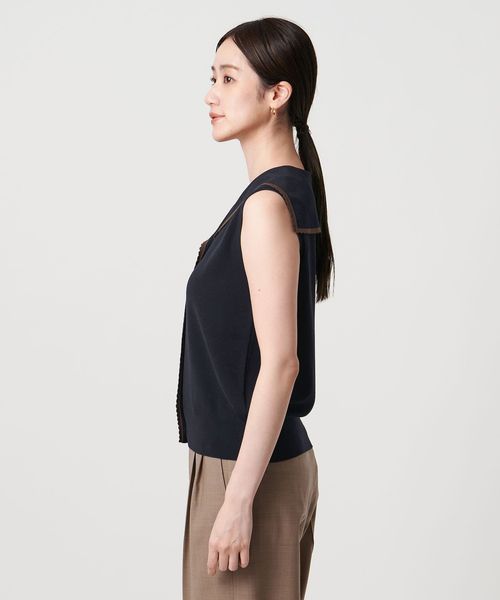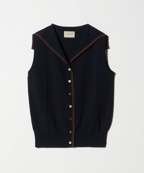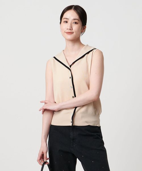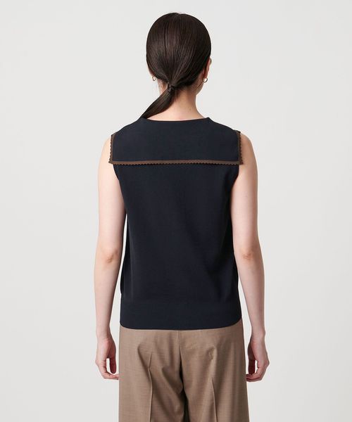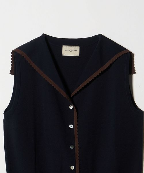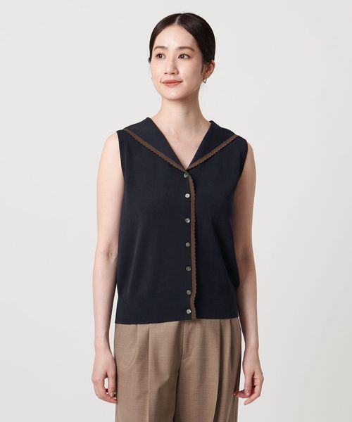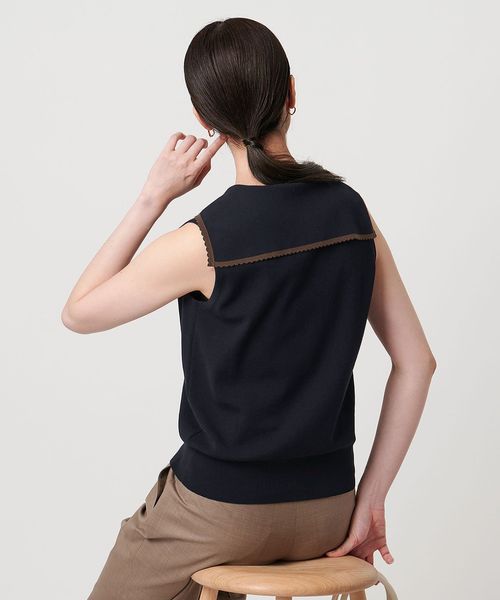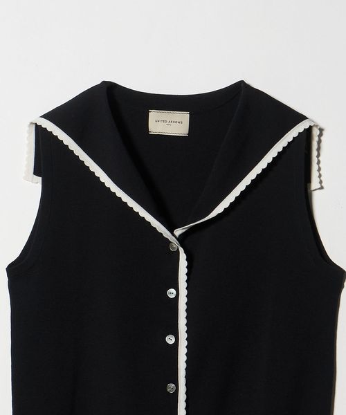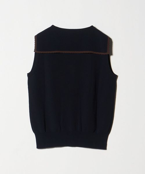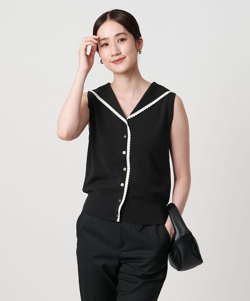 スカラップ セーラー ノースリーブ ニット ウォッシャブル