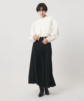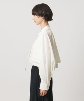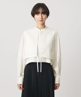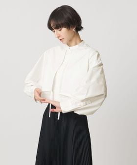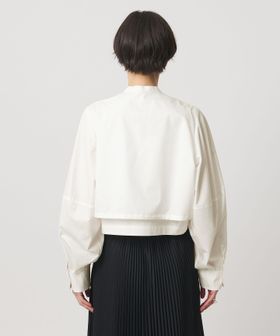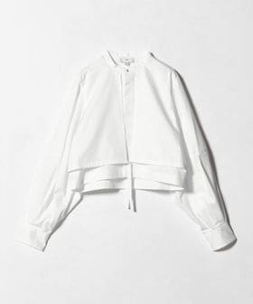 ふんわりとしたバルーンスリーブに、ボレロ風のレイヤーが重なる立体的なデザインの羽織シャツ。