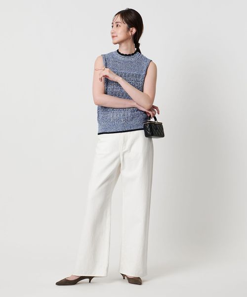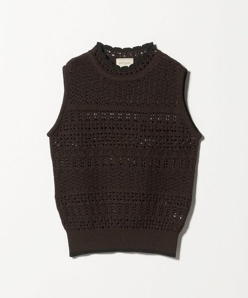 透かし模様とスカラップの縁取りが、上品で柔らかな印象のニット