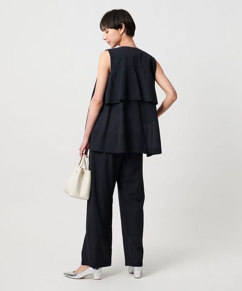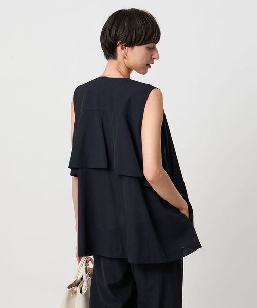軽やかで立体的なバックフレアディテールが魅力的なベスト。