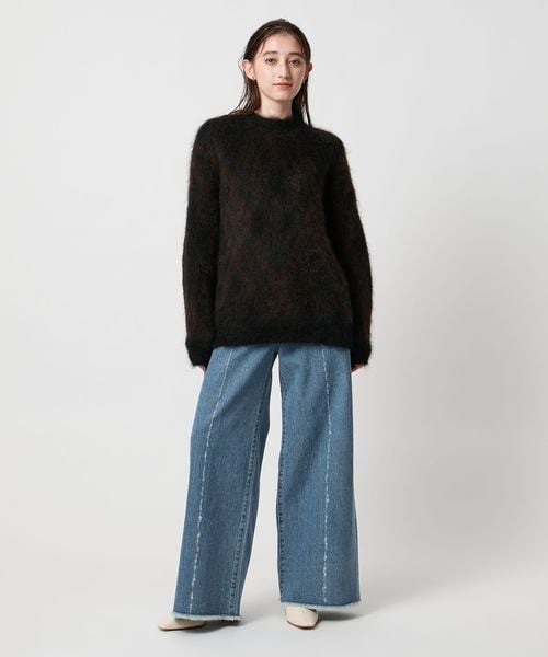 センターライン上にクラッシュ加工をほどこしたワイドデニム。