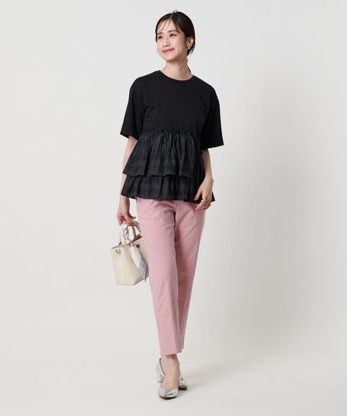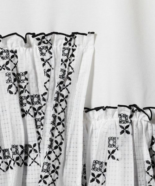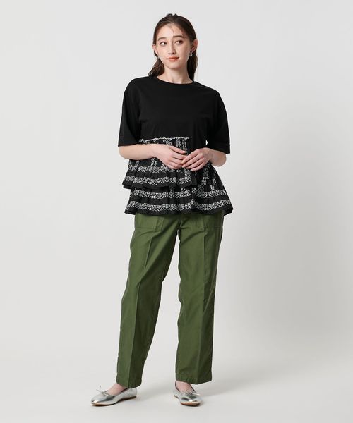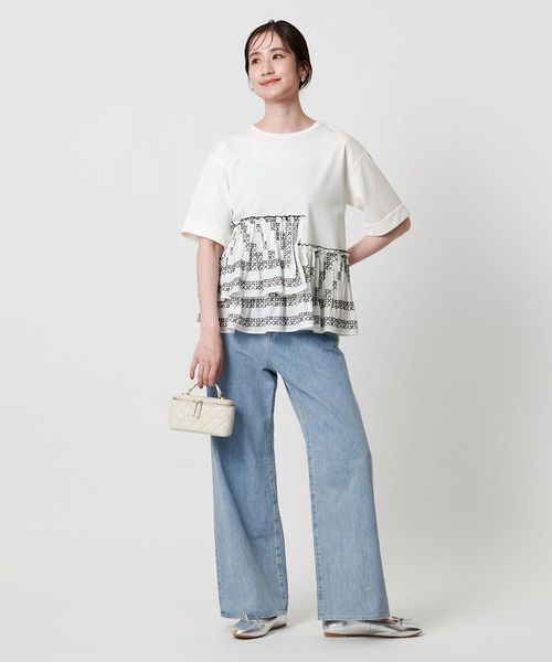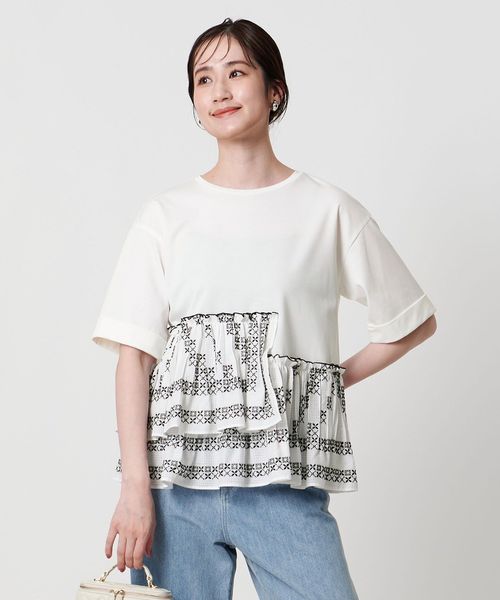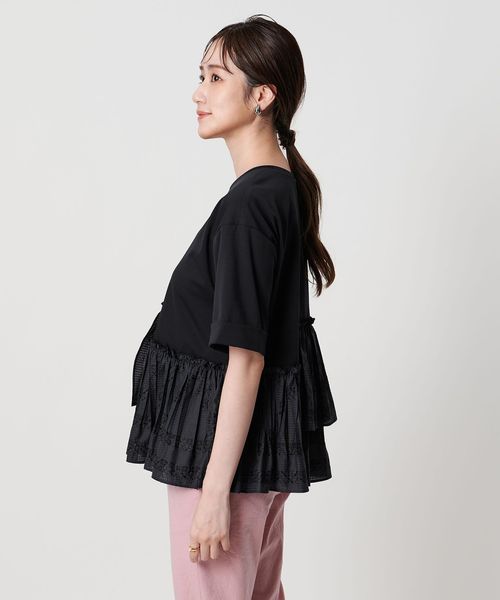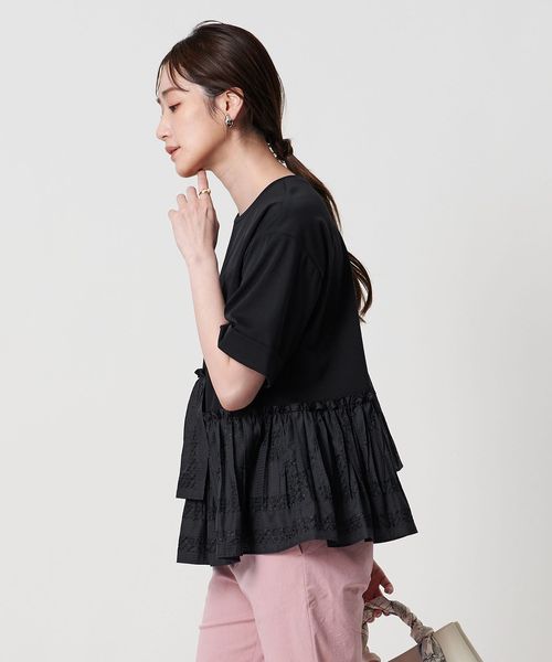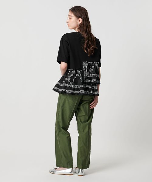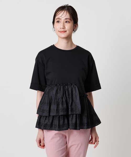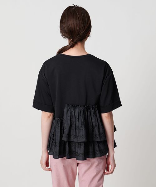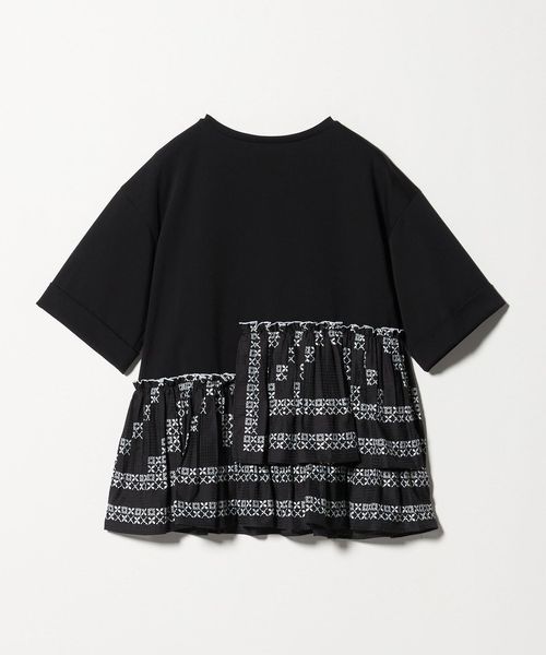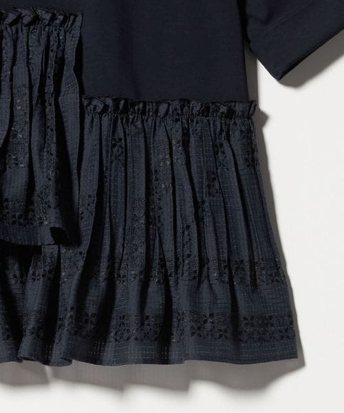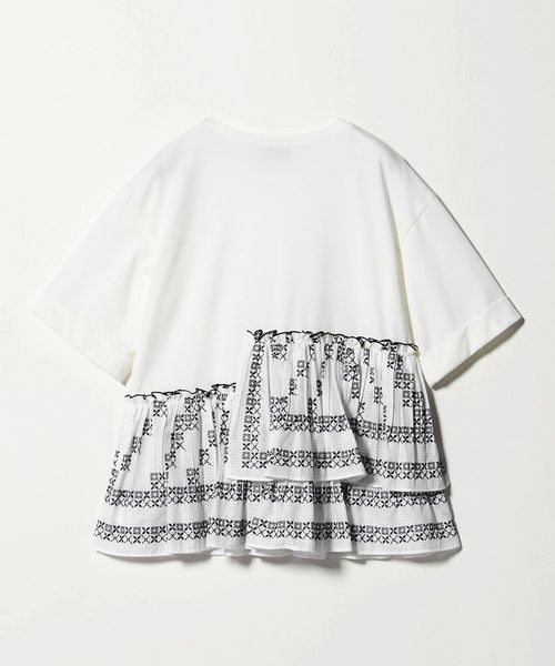 エンブロイダリープリーツ コンビ Tシャツ